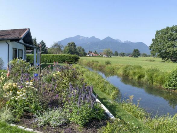 Das Fischerhaus am Moosbach - ein ebenerdiger Bungalow - liegt im Ortsteil Mietenkam der Gemeinde Grassau fast am Ende des Forellenwegs.Das Grundstück grenzt direkt an den Moosbach, der an dieser Stelle etwa einen Meter tief ist.Viel Raum mit 3 Schlafzimmern - die Aufteilung der Wohnfläche mit ca. 130 m2: 1 Masterbedroom mit zwei 2x1 m Betten, ein Gästezimmer ebenfalls mit zwei 2x1 m Betten und ein Einzelzimmer. 50 m2 Wohn-und Eßzimmer mit Kachelofen gehen ineinander über. Von hier bietet sich ein herrlicher Blick auf die Berge und das angrenzende Naturschutzgebiet. Küche, Bad und eine zweite Toilette vervollständigen den Wohnbereich. In einem getrennten Haushaltsraum sind Waschmaschine und Trockner untergebracht, am Garten gibt es eine kleine Sauna mit Dusche.