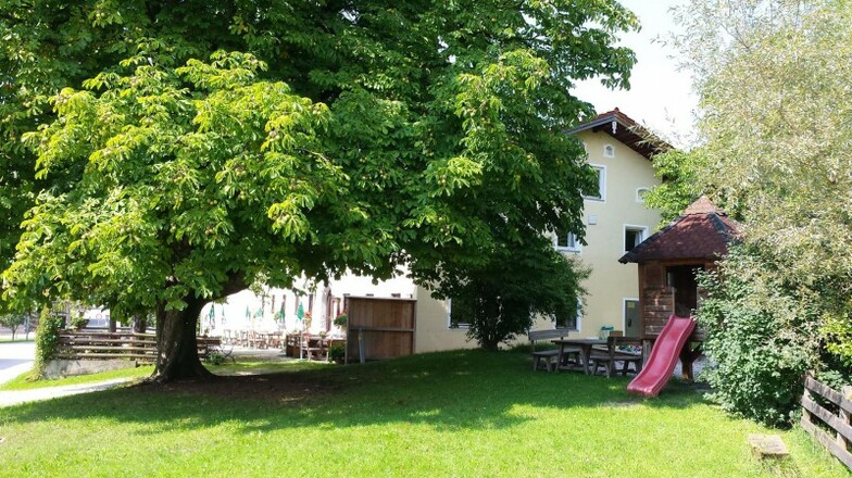 Unser gemütliches Gasthaus, seit Jahrhunderten Dorfwirtshaus in Steinbrünning, liegt mitten im Grünen, unmittelbar neben der Kirche des kleinen idyllischen Dorfes Steinbrünning zwischen Freilassing und Laufen.