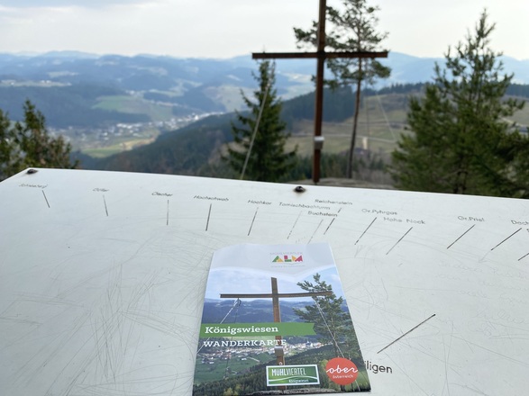 Sehr schöner Waldwanderweg hinauf zum Gipfelkreuz von Königswiesen (ca. 350 Hm). Bei gutem Wetter ist die Fernsicht zu Ötscher und sogar Dachstein grandios. Im Herbst hat man oft vom Gipfelkreuz aus ein Nebelmeer unter sich.