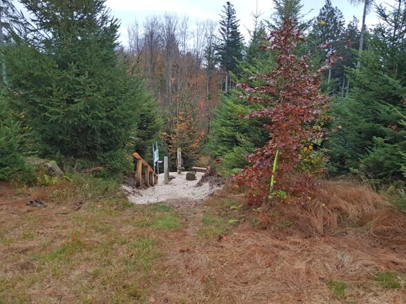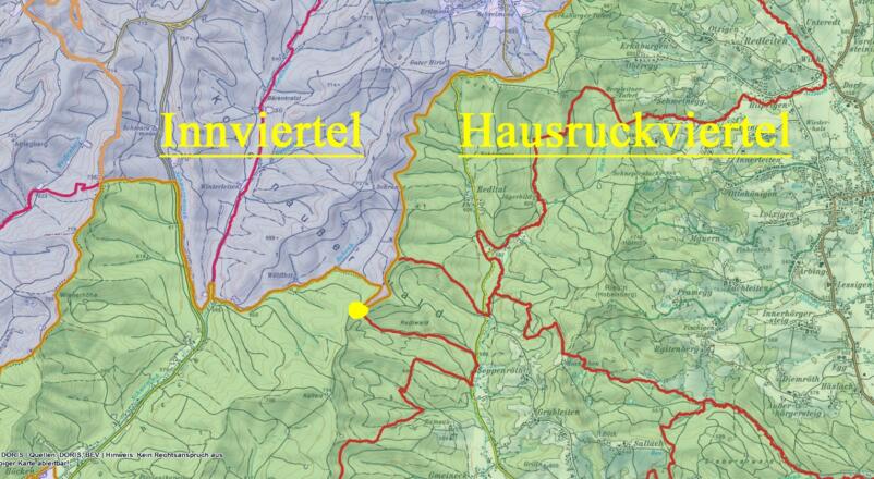 Wanderung zu einem historischen Punkt im riesigen Kobernaußerwald.