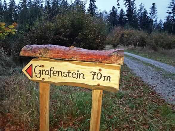 Die Wanderung beginnt beim Forsthaus Hocheck entlang des Rabenbach ca. 1,5 km bis kurz vor der Wölflhütte. Hier zweigt rechts die Forststraße mit der Bezeichnung "Klauskopf" ab. Diese Forststraße folgt man erneut ca. 1,5 km leicht ansteigend bis auf eine Höhe von 700 m. Direkt beim verlassen des Waldes steht links ein Hinweisschil "70 m zum Grafenstein. Leicht absteigend gelang man in wenigen Schritten zum Denkmal. Der Rückweg folgt auf der selben Strecke.