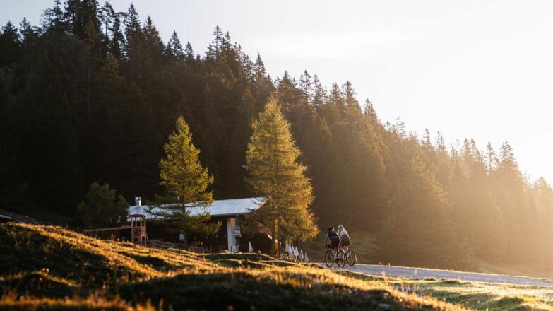 Tipp: Ab dem Leutascher Ortsteil Weidach fährt man stets entlang der Leutascher Ache, die mit ihrem kristallklaren Wasser immer wieder zu einer Pause verlockt. An zahlreichen wunderschönen Stellen findet man Zugang zum Ufer, wo man besonders an heißen Tagen gerne lange verweilt. Am Parkplatz Salzbach am Eingang des Gaistals kann man außerdem die neu angelegte Kneipp-Anlage besuchen und die Füße erfrischen. Wer nach der Gaistalalm noch fitte Beine hat, kann weiter bis zur Tillfussalm und sogar bis zum Seebensee fahren. Wer die Tour lieber abkürzen oder noch eine weitere genussvolle Einkehr einbauen möchte, kann weiter vorne im Gaistal zur Hämmermoosalm abbiegen.