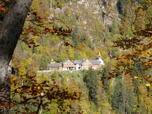 Ein kurzer Besuch des Klosters ist empfehlenswert, bevor Sie Ihren Spaziergang weiter fortsetzen. Wenige Meter nach dem Kloster gelangen Sie zu einem weiteren Wegweiser, hier halten Sie sich Richtung Kaltenbrunnen. Auch Landschrofen-Känzili (ca. 10 min.) wird hier schon angeführt. Ein Abstecher zum Aussichtspunkt Landschrofen ist lohnenswert. Beim Aussichtspunkt Landschrofen angekommen können Sie einen Ausblick Richtung Schruns-Tschagguns und Vandans genießen. Bei guter Sicht sind sogar die berühmten Drei Türme im Rätikon zu sehen. Zudem stehen hier Ruhebänke zur Verfügung. Nach dem Besuch des Aussichtspunkts halten Sie sich links und geht es weiter durch den Wald und der Abstieg beginnt.