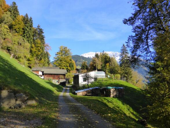 Der Spaziergang startet im Ortszentrum von Schruns. An der Pfarrkirche St. Jodok laufen Sie die Fußgängerzone entlang bis Sie zur Silbertalerstrasse kommen. Dort überqueren Sie die Strasse und laufen links am Geschäft Zimba Moden vorbei und kurz darauf überqueren Sie die Brücke und laufen geradeaus weiter. Sie spazieren am Hotel Krone vorbei und gelangen wenige Meter danach zu einer kleinen Kapelle und der Abzweigung nach Bartholomäberg. Sie folgen ein minimales Stück der Straße Richtung Bartholomäberg. In der leichten Linkskurve (Steinmauer) befindet sich schon die Abzweigung in den Spazierweg. Laut Wegweiser folgen Sie dem Bergknappenweg und anschließend biegen Sie nach links ab. Es geht etwas steil bergwärts Richtung Montjola. Auf der linken Seite wird Wein angebaut und oberhalb der Weinstauden befindet sich eine Ruhebank. Sie befinden sich schon etwas oberhalb von Schruns. Nach ca. 5 min. erreichen Sie eine Stiege, welche Sie hochsteigen. Achten Sie auf den Verkehr, überqueren die Montjolastraße und gegenüber setzen Sie den Spaziergang weiter bergwärts fort. Nach weiteren 5 min. erreichen Sie Abzweigung „Kloster Gauenstein / Broxweg“. Zunächst haben Sie die erste Höhe erreicht. Ab der Abzweigung geht es auf fast ebenen Weg Richtung Kloster Gauenstein. Über die Wiese spazieren Sie weiter, passieren ein Stall- und Wohngebäude bis der Weg im Wald weiter geht. Nach einem kurzen Waldstück erreichen Sie über einen weiteren Wiesenweg, welcher leicht aufwärts führt ein einzelnes Haus mit toller Lage. Anschließend führt der Weg kurz bergab und Sie kommen an weitere Wohnhäuser vorbei. Der Forstweg geht dann eben weiter und nach ca. 5-10 min. erreichen Sie das Kloster Gauenstein.