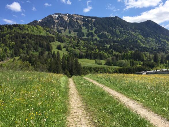 Vom kostenlosen Parkplatz am Friedhof in Rettenberg geht es zuerst über eine Wiese zu einem Pfad der im Wald zuerst einige Höhenmeter nach unten zum Bach und Spielplatz führt. Dann bergauf auf schönem Waldweg bis zur Alpe Kammeregg. Es lohnt sich hier spätestens beim Abstieg einzukehren. Danach verläuft der Weg über Wiesen und die letzten 150 Höhenmeter etwas steiler zum Gipfel. Kurz vor dem Gipfel kommen 1-2 Stellen an denen man kleine Kinder an die Hand nehmen sollte, da es seitlich vom Weg steil nach unten geht. Am Gipfel gibt es sehr viel Platz um sich in die Wiese zu setzen und das Panorama zu geniessen.
