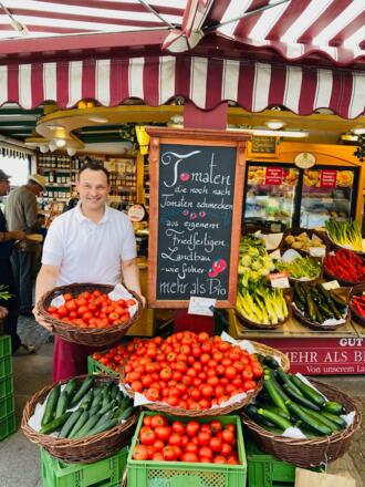 Standleiter Eik Lautenschläger, der bereits seit 18 Jahren Gut zum Leben die Treue hält, erzählt mit funkelnden Augen und einem fortwährenden Lächeln über seine Identifikation und Begeisterung über das Betriebskonzept. Nachdem der gebürtige Katalane zunächst als Verkäufer am Viktualienmarkt angefangen hatte, verantwortet er als Vertriebsleiter insgesamt 10 Stände der Gut zum Leben GmbH.