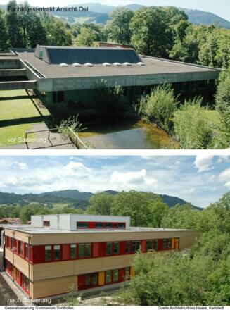 Von der Generalsanierung des Gymnasiums Sonthofen sollen außer den Schülern, Lehrern und Sonthofenern auch andere profitieren, die auch vor einer Schulsanierung stehen: Deshalb steht sie als Leuchtturmprojekt im Allgäu. Die aufwändige und ganzheitliche Sanierung der 1972 bis 1974 nach dem "Kasseler Modell" gebauten Schule zeigt, wie Flächen optimal genutzt werden und Kostenpläne eingehalten werden. Mit Mitteln der Bundesstiftung Umwelt (DBU) war es möglich innovative Techniken einzusetzen und die Umsetzung der Maßnahmen zu bezuschussen.