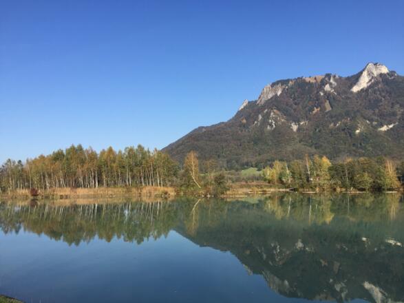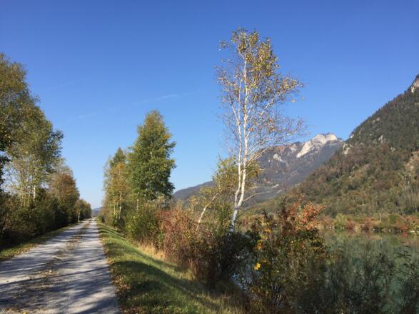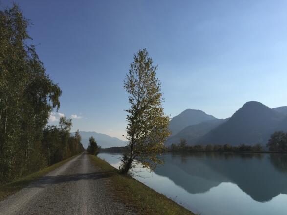 Auf der Westseite des Inn's entlang der Autobahn, die Ostseite ist sehr ruhig mit Blickrichtung Wilder Kaiser.