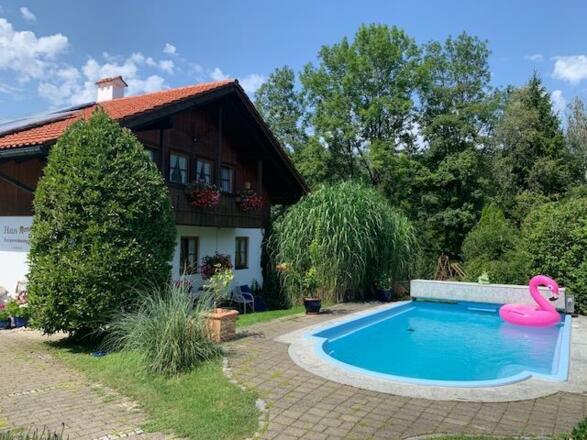 Fühlen Sie sich wie zu Hause in unserem gemütlichen, komfortablen, ruhig am Waldrand gelegenen Ferienhaus. Alle vier Ferienwohnungen haben im November 2020 nach der DTV Klassifierzung **** Sterne erhalten ! .Vier sehr gepflegte Ferienwohnungen (ca. 50qm) mit Sat-TV, Telefon, Mikrowelle, Spülmaschine ,eigene Waschmaschine, eigener Balkon, oder eigene Terrasse. Alle Ferienwohnungen modern und neu ausgestattet mit Handtuchtrockner Duschkabinen etc. Sehr gepflegte Anlage. Parkplatz dirket vor dem Haus. Solarbeheiztes Freibad (Mai-September), Sauna, Dampfbad, Fitnessraum, Solarium, Grillplatz, große Liegewiese. Hinter dem Haus Naturpark mit Bach und Fischweiher Familiäre, kinderfreundliche Atmosphäre,