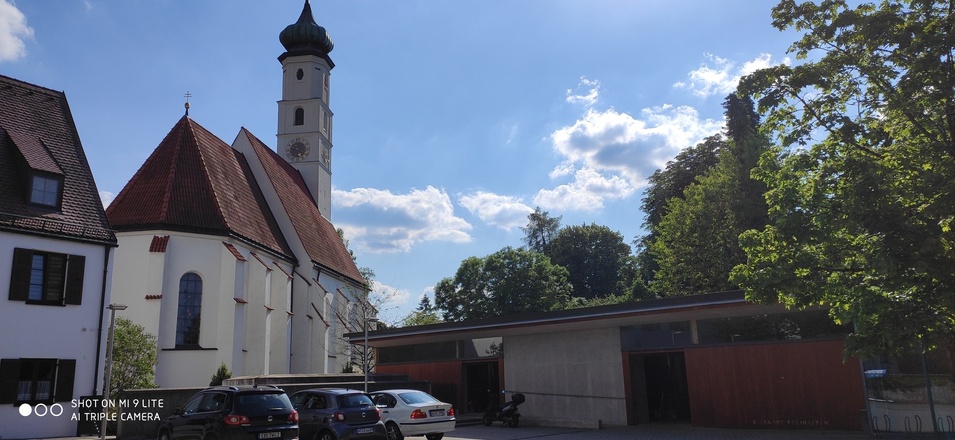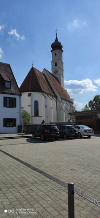ehemalige Wallfahrtskirche mit Kruzifix.