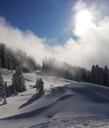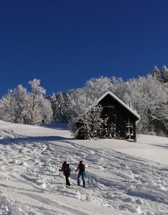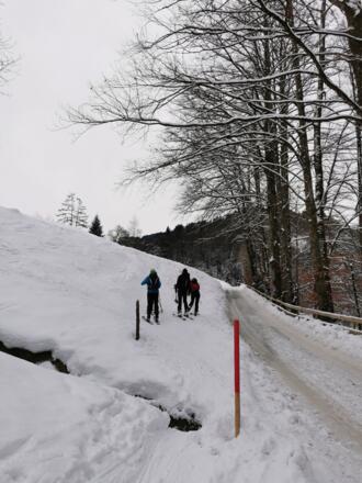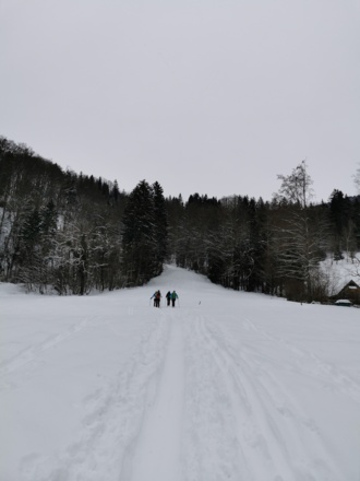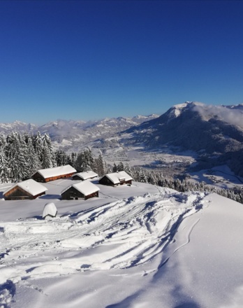 Wenn sich im unteren Teil wenig Schnee befindet, kann mit den Ski bis Schwarzenberg oder Bödele abgefahren und der weitere Rückweg mit dem Bus zurückgelegt werden.