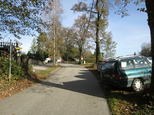 Kurz nach der Abfahrt von der Bundessstraße sind links die kostenlosen Parkplätze. Nach dem Halterverbot gibt es weitere Parkmöglichkeiten entlang der Straße.