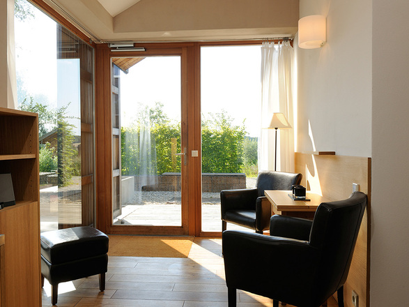 Hofgut Hafnerleiten Zeit für Ruhe 1999 ursprünglich als erste Kochschule Niederbayerns eröffnet, verwandelte sich das Hofgut Hafnerleiten in der Nähe von Bad Birnbach in Niederbayern über die Jahre hinweg in einen unvergleichlichen Rückzugsort. Das Refugium liegt inmitten der Natur nur fünf Kilometer nördlich von Bad Birnbach im Rottal, Europas größter Golf- und Thermenlandschaft. Ein kleines, familiär geführtes Boutiquehotel mit zehn verschiedenen Themenhäusern, drei neuen Einzelzimmern und zwei Suiten auf 30.000 Quadratmeter Privatgrund - eine Architekturperle mit vielen Auszeichnungen. Spüren Sie die mediterrane Lebensart und lassen Sie sich ein auf unsere Art der Gastfreundschaft - genießen Sie Ihr eigenes Haus und die Gemütlichkeit des gemeinsamen Abendessens im Haupthaus, das für alle Hausgäste ein lieb gewordenes Ritual geworden ist. Das Bademantelfrühstück bringen wir Ihnen täglich ins Haus. Kulinarik spielt eine essenzielle Rolle im Hofgut Hafnerleiten. Besitzer Erwin Rückerl bietet regelmäßig Kochkurse an, in denen sich seine Liebe zur mediterranen Küche widerspiegelt. Die Kochschule bietet Antipastikurse, Fisch und Menükurse sowie Grillkurse am Weber Grill und am Feuerring an. Eine weitere Leidenschaft des Hausherrn ist die BARISTASCHULE - mit den Kursen: "Der Weg zum perfekten Espresso" und LATTE ART. Das Restaurant öffnet seine Türen für alle Gäste jede Woche - ganzjährig - am Donnerstag zur Spaghettata und am Freitag zum Kulinarium. Da die Plätze im Hofgut begrenzt sind und alles frisch gekocht wird bitte immer reservieren. Prävention - Gesundheit – Sicherheit KEIN ELEKTROSMOG im Hofgut. Im Haupthaus des Hofguts gibt es einen kostenfreien W-Lan Zugang. Auf dem restlichen Gelände ist der Handyempfang schwach, es gibt keine störende Überlandleitungen und abschaltbare Steckdosen am Bett, was für tiefen, erholsamen Schlaf sorgt.
