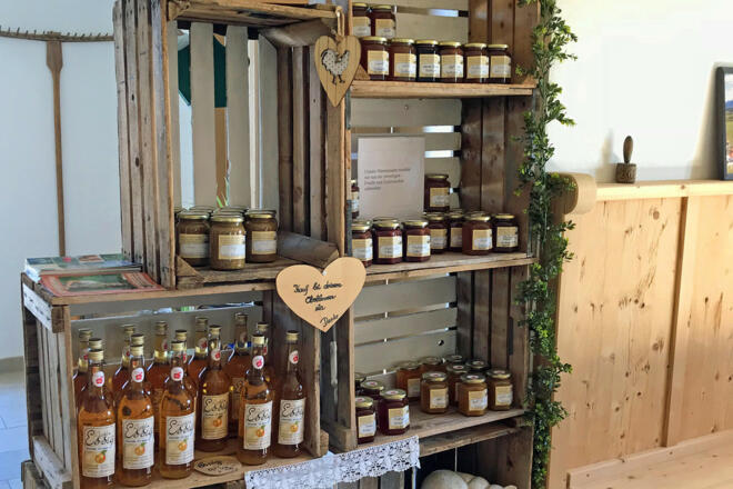 Im Hofladen der Mosterei Meisterhof in Bad Feilnbach sind allerlei Edelbrände, Säfte, Obst sowie viele weitere Schmankerl erhältlich.
