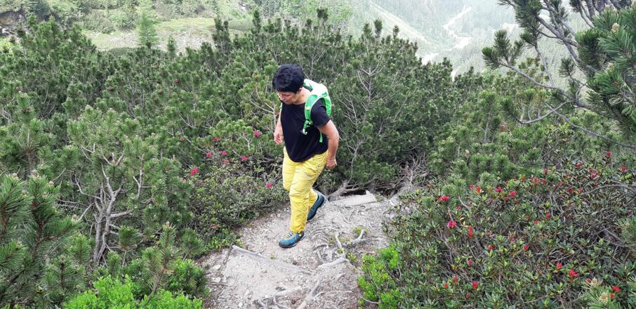 Der erste Wegabschnitt auf einer Forststraße führt uns entlang eines Kleinods - eines Grauerlenwalds. Bald zweigt ein Steig zur urigen Inneren Zeischalm ab. Weiter geht es über Almwiesen auf den bereits sichtbaren Kamm zu und diesem Kamm entlang zum Gipfel.