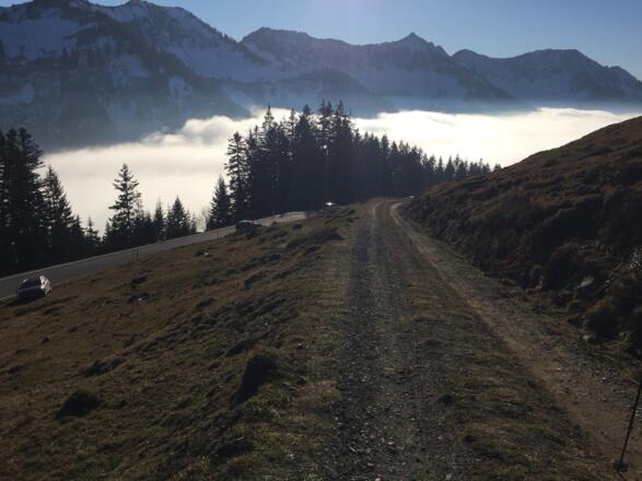 Ab Gävisalpe eher den schönen Wanderweg als die Fahrstrasse nutzen.