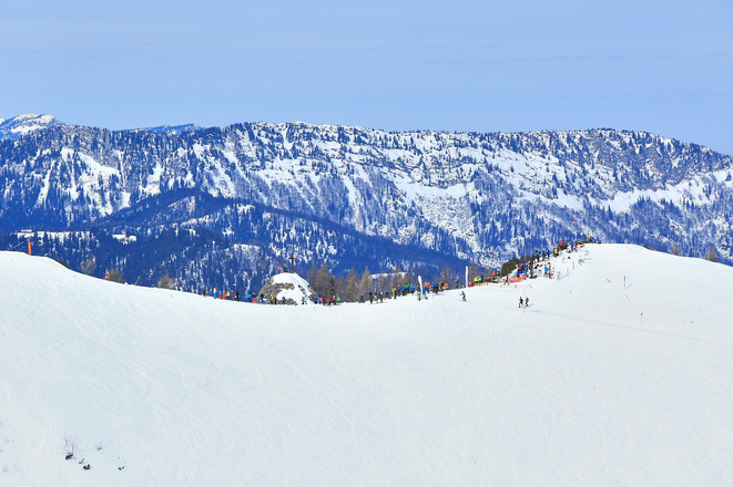 Abfahrt im freien Gelände über die sog. Buckelpiste zum bewirtschafteten "Mitterkaser" (1530 m, Verpflegung, 6. Wechselzone)
