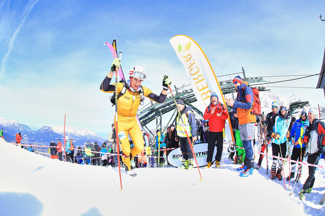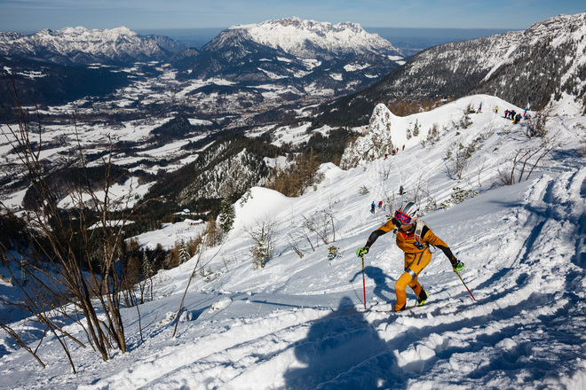 Start für alle Klassen östlich der Mittelstation der Jennerbahn auf ca. 1165 m > kurzes Pistenstück > Aufstieg im freien Gelände des Beckhangs rechts der Piste > Pistenquerung > Aufstieg zum Spinnerkaser (Vogelhüttenalm, 1410 m) und durch den Kleinen Spinnergraben im oberen Teil rechtshaltend unterhalb des Jennergrats entlang in den Gr. Spinnergraben > 1. Tragepassage vorbei an der Bergstation der Jennerbahn (1805 m) zum Jennergipfel (1850 m, 1. Wechselzone)