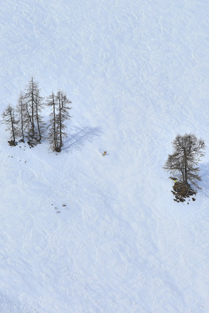 Abfahrt durch den sog. Gr. Spinnergraben zum Spinnerkaser (1410 m, hier Ende der Damenabfahrt) und nach kurzem Pistenstück im freien Skigelände über den sog. Beckhang zur Mittelstation der Jennerbahn (1200 m, 2. Wechselzone).