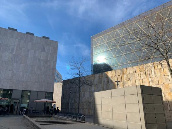 Museum, Synagoge und Gemeindehaus treffen beim Jüdischen Zentrum in der Münchner Innenstadt zusammen.