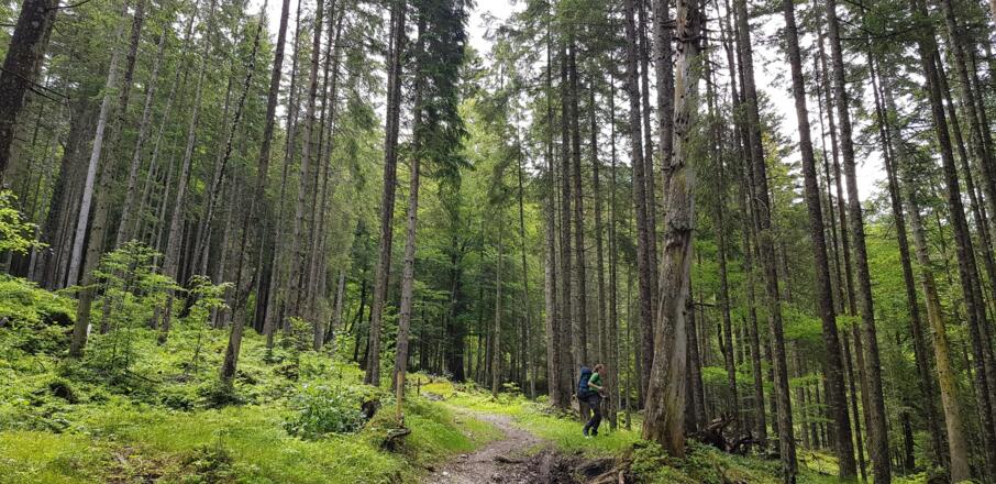 Ebenso schön ist der Kontrast, wenn man kurz vor dem Soiernhaus unvermittelt den Bergwald rund um die Soiernseen erreicht.