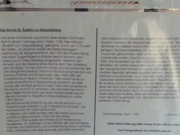 Wanderung „Kirchen und Kulinarik“ - Ausgangspunkt ist die spätgotische Pfarrkirche St. Laurentius. Der Hochaltar ist mit drei der schönsten Figuren des Meisters von Rabenden geschmückt. Vom Rathaus Obing führt der Weg entlang der Schulstraße, man überquert die (ehemalige) B 304, folgt der Ameranger Straße bis zu deren Ende. Dort hält man sich rechts und an der nächsten Weggabelung halblinks in Richtung Albertaich/Ilzham. Nach 1 Kilometer kommt man zur kleinen Ortskapelle in Ilzham (Betbankerl) mit neuromanischen/neugotischen Formen, die 1887 erbaut wurde. An der Kreuzung wandert man rechts und nach etwa 300 Metern links weiter auf dem Jakobsweg nach Albertaich mit seiner Katholischen Filialkirche St. Jakob (spätgotisch mit barockem Ausbau, vermutlich 15. Jahrhundert). Einkehrmöglichkeit im Ort beim Gasthof Hingerl (Tel. 08624-1514). Von Albertaich aus geht es zunächst weiter auf einem Feldweg (Wolfegg am Ortsanfang von Albertaich links liegen lassen), der in ein Waldgebiet führt. Wichtig: an der ersten Weggabelung im Wald links gehen (Wegweiser „Diepoldsberg“)! Dann folgt man dem Weg bis dieser in eine befestigte Straße mündet (ca. 1½ Kilometer). Dort nach rechts (Wegweiser „Diepoldsberg“) weiter, gelangt man nach ca. 3/4 Kilometer auf direktem Weg nach Diepoldsberg mit der Katholischen Filialkirche St. Ägidius (ca. 1430). Nach etwa 1,5 Kilometer erreicht man Gramelberg, wo man einen faszinierenden Blick auf die Chiemgauer Alpen hat. Nun dem Feldweg auf der linken Seite bis zum Wegweiser “Allerding-Heinrichsberg“ folgen. Man passiert Allerding und überquert die Kreisstraße TS 8 auf Höhe Aiglsham. Hier befindet sich eine Privatkapelle aus dem 19. Jahrhundert (mit Ausstattung und Dachreiter). Die Wanderung führt nun über Pittenhart. Am Bahnhof über das Bahngleis der Lokalbahn Bad Endorf - Obing (LEO) zu einem Bankerl an einer Kapelle unter schattenspendenden Bäumen. Nach weiteren 1½ Kilometern gelangt man nach Pittenhart mit seiner Katholischen Pfarrkirche St. Nikolaus (spätgotisch, 1846/47 umgebaut). Einkehrmöglichkeit in Pittenhart ist der Kirchenwirt (Tel. 08624-2133). Auf der Waldstraße, die vor der Alten Zollstation (Tel. 08624 879 89 57) links in den Wald führt, geradeaus weiter. Nach etwa 2 Kilometern erreicht man rechts des Weges die Pestkapelle, die 1860 in Erinnerung an die Pest von 1635 erbaut wurde. Nach einer kurzen Steigung gelangt man in wenigen Minuten nach Obing. Über die Pestkapellenstraße kommt man in die Poststraße mit dem modernen Gotteshaus der Ev.-Luth. Kirchengemeinde Bad Endorf aus dem Jahre 1997. Weiter auf der Bahnhofstraße, von dort zurück in die Obinger Ortsmitte und zum Ausgangspunkt der Tour. Einkehrmöglichkeiten in Obing: Oberwirt (Tel. 08624 8911-0), Weißbräustüberl (Tel. 08624 2238), Gasthof Zur Post (Tel. 08624 2206), Yim Yim - Thai köstlich (Tel. 08624 8915400), Orient KebapHaus (Tel. 08624 879 021) sowie unsere Cafés: Marktcafé Karavil (Tel. 08624 875 077) und beim Brothaus Lehrbach (Tel. 08624 879745)