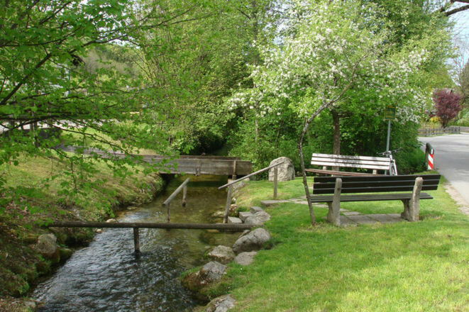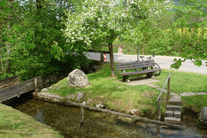 Genießen Sie die natürliche Wassertretanlage, die direkt in den Bachverlauf integriert wurde. Reizvoll gelegen mit zwei Ruhebänken zum Entspannen und Erholen, bietet die Kneippanlage einen wunderschönen Blick auf Schloss Hohenaschau, die Kampenwand und das Zellerhorn.