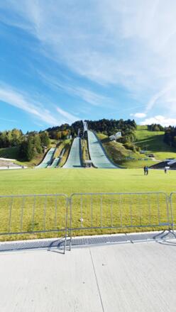 Genieße auf diesem Abschnitt den Blick auf die Sprungschanze und den danebenliegenden Gudiberg.