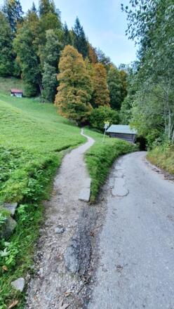 Folge dem Asphaltweg in Richtung Partnachklamm, nach ca. 400 Metern biegst du am Umspannwerk rechts ab.
