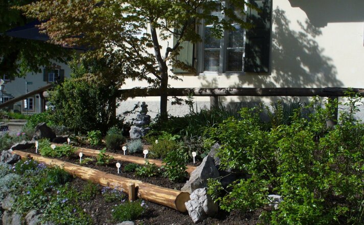 Das weite Sonnental der Jachenau lädt zu besonderen Naturerlebnissen ein. Vor dem Dorfladen finden Sie ein liebevoll angelegtes Kräutergärtlein.