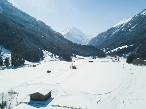 Der Ortsteil Falbeson ist das Langlauf-Dorado im Stubaital. Schneesicher gelegen finden sich dort eine Vielzahl von Routen in allen Schwierigkeitsgraden. Die Route Falbeson leicht startet bei der Doadler Alm und führt talauswärts bis nach Klaus Äuele. Von dort geht es in einer Schleife wieder zurück zum Ausgangspunkt.