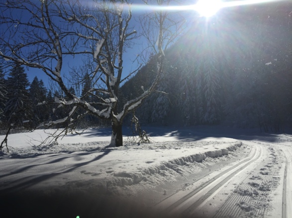 Die klassische Loipe geht weiter ins Tal auf und ab durch den Wald, über eine Brücke quert man die Rottach. Man kommt bei der Mautstation Enterrottach raus. Hier könnte man auch parken. Für den Einstieg braucht man hier Hilfe.