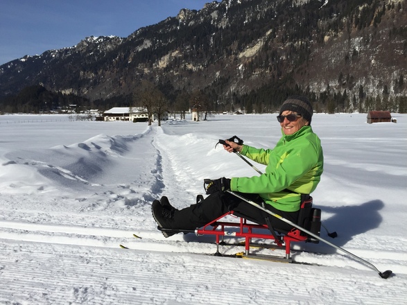 Der Deutsche Rollstuhlsportverband, Abt. Wintersport hat zwei Langlaufschlitten in Garmisch im Verleih.