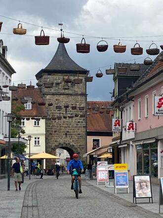 Vom Bahnhof in Bad Staffelstein geht es nach Kulmbach. Vorbei an der Basilika Vierzehnheiligen und der Benediktinerabtei Kloster Banz geht es auf familienfreundlichen Wegen nach Lichtenfels der Korbmacherstadt. Körbe hängen über der Fußgängerzone. Die Sitzbänke sind geflochten. Hier darf der Main wieder Fluß sein mit Auwäldern, Kies- und Sandbänken, Steilufer mit viel Lebensraum. Später läd der Baggersee am Oberauhof zum Bad ein. Kurz danach erreichen wir den Zusammenfluß vom Weißen und Roten Main bei Katschenreuth.