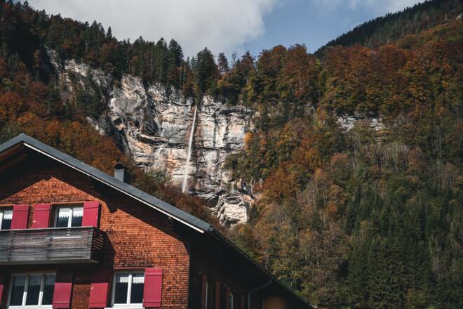 Das Wasser des Fluhbach stürzt rund 110 Meter in die tiefe und ergibt somit einen spektakulären Wasserfall.