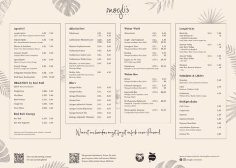 Das mogli’s umfasst zwei Räume, sowie eine direkt angrenzende Terrasse. Das Herzstück – der Gastraum bietet Platz für 80 Leute. In den Sommermonaten erwacht die Terrasse aus dem Winterschlaf und so finden hier zusätzlich rund 30 Gäste Platz.