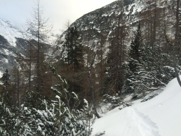 Vom Wanderparkplatz in Scharnitz mit dem Bike ca. 10Km ins Karwendeltal. Auf Höhe der Wildfütterung (ruhig verhalten und erst nach der Dämmerung passieren) geht rechts ein Weg über Fluss (Brücke), der weiter ins Neunerkar führt. Links haltend bis in die Scharte (Biwakschachtel meist verschneit und nicht erkennbar) führt. Hier Abfahrt oder weiter auf Gr. Seekarspitze.
