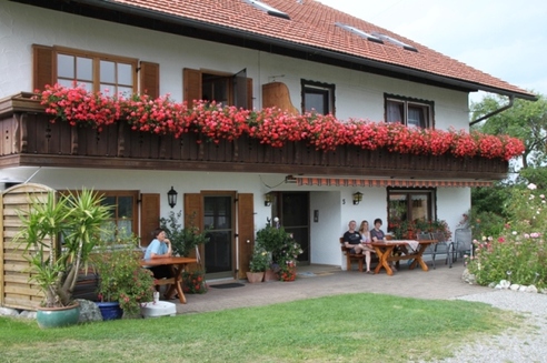 Der Logenplatz im Alpenvorland. Unser Bauernhof ist im Familienbesitz seit über 200 Jahren. Bei uns wird Tradition und Moderne im Einklang mit der Natur gelebt. Der Hof ist auf einer Anhöhe (800 m) in einer sehr ruhigen Lage. Das Bergpanorama reicht von den Ammergauer- bis zu den Allgäuer Alpen. Auf unserem biol. bewirtschafteten Grünlandbetrieb gibt es 2 Kaltblutpferde und das Pony "Moni" für Kinder, Rinder, Katzen, Hühner und Hasen. Ein grosser Spielplatz, Schaukel, Baumhaus, Wippe, und ein Basketballnetz sind vorhanden; eine Liegewiese mit Schatten spendenden Bäumen und ein gemauerter Grill ebenfalls. Bei schlechtem Wetter kann auch unter Dach mit 2 Kettcar gefahren und Tischtennis gespielt werden. Freizeitaktivitäten: Reitmöglichkeit am Hof,(keine Reiterausbildung) Wandern, Fahrrad fahren, Nordic-Walking, 2 Golfplätze, 2 Badeseen, Floßfahrten, Kultur, Museen. Schloss Neuschwanstein, Hohenschwangau, Linderhof, UNESCO-Weltkulturerbe Wieskirche, Linderhof, Kempten, München, Augsburg, Garmisch-Partenkirchen, alles ist auf kürzestem Weg von uns aus erreichbar. Der Parkplatz für PKW ist direkt am Haus. Garage für Motorräder! Mit unseren 3 Ferienwohnungen haben sie einen Logenplatz im Alpenvorland. Ein unvergleichliches Bergpanorama erwartet Sie!Die Wohnungen sind auf 3 Etagen verteilt und für jeweils 2-4 Personen ausgelegt. FeWo AUERBERG (EG 70 qm) mit Terrasse F * * * * FeWo TEGELBERG (OG 70 qm) mit Balkon F * * * * FeWo ZUGSPITZE (DG 58 qm) F * * * * Die Wohnungen sind vom Deutschen Tourismusverband (DTV) klassifiziert und besitzen außerdem das DLG-Gütezeichen.Das Internet (DSL) ist für Sie kostenlos und uneingeschränkt per WLAN nutzbar. "Bei Übernachtung in unserem Haus erhalten Sie die KönigsCard als kostenlose Zusatzleistung". Damit können Sie ca. 200 Freizeitangebote im Allgäu, den Ammergauer Alpen und in Tirol kostenfrei nutzen.www.koenigscard.com