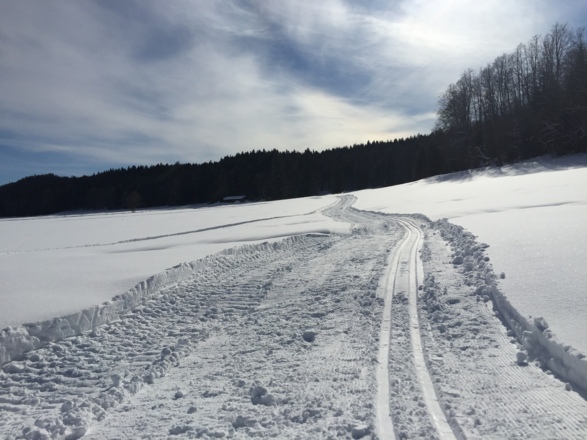 Die Parsberger Loipe führt von Parsberg, Richtung Miesbach. Sie ist zwar offiziell als einfach ausgeschrieben, für Langlaufschlittenfahrer würde ich sie aber als schwierig einstufen.