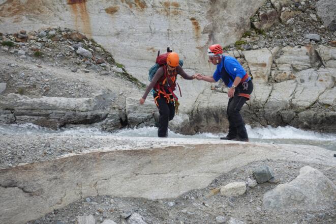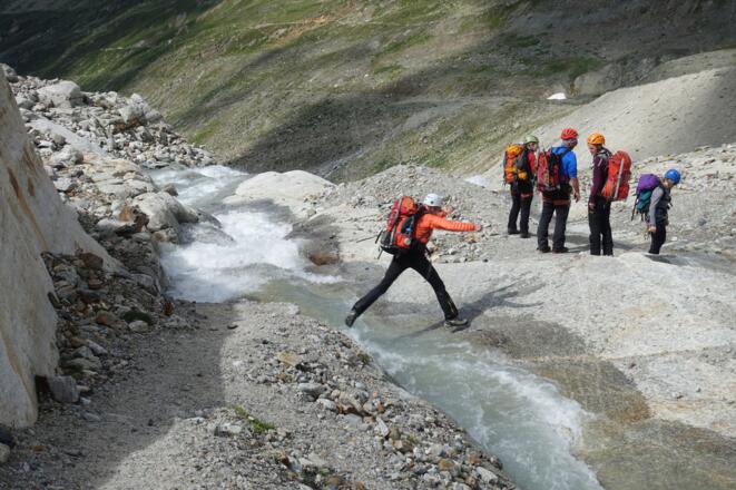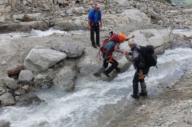 Gletscherbegehung - macht das Anseilen unbedingt erforderlich.