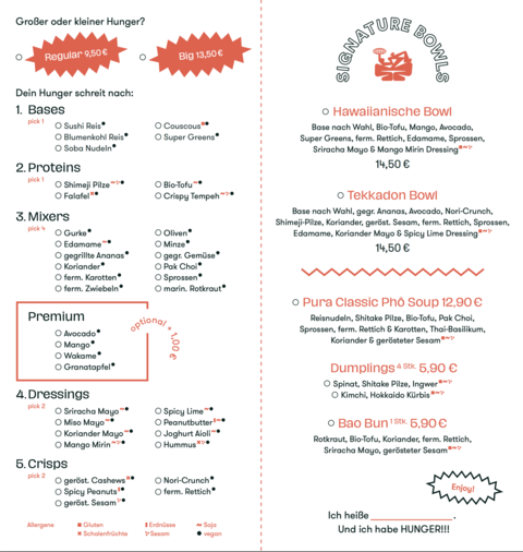 Wir finden, eine gesunde und nachhaltige Lebensweise muss nicht fade oder voller Ersatzstoffe sein. Das wollen wir Ihnen gerne zeigen. Mit knackigen Zutaten auf dem Teller, frischen Farben und einem abwechslungsreichen Angebot. Diesen bewussten Genuss ermöglicht unser junges, kreatives Team.