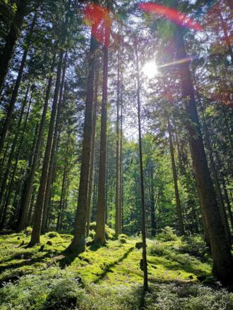 Diesmal führt uns der Wandertipp nach Rabenstein, genauer gesagt zum Parkplatz der Kaisersteig Loipe. Hier beginnt unsere 3,4 km lange leichte Wanderung und verläuft über das „Mühlbachl“, vorbei an Ökoteichen mit Biberbauten. Bei den Ökoteichen lassen sich kleine fliegende Juwelen, viele bunte Libellen beobachten. Weiter geht es mit einem kurzen Aufstieg zu Baumriesen der Douglasie. Hier bietet sich ein malerischer Ausblick auf einem Aussichtsfelsen. Folgt man dem Steig weiter, führt dieser durch einen alten Lärchenwald zu einer Blumenwiese. Bunte Farbtupfen vieler unterschiedlicher Blütenpflanzen reihen sich hier aneinander. Wiesen-Glockenblumen, Wicken oder gar der wunderbar vielfarbigen Hain-Wachtelweizen können betrachtet werden. Die Wiese gehörte einmal zur "Ableg", einem früheren Weiler. Glasmacher und Aschenbrenner der Glashütten von Rabenstein lebten hier. Will man Näheres zur Geschichte erfahren kann die dortige Infotafel gelesen werden. Eine Bank neben der Infotafel lädt zum Bleiben und zum Brotzeit machen ein. Ausgeruht geht es anschließend zurück zum Kaisersteig.
