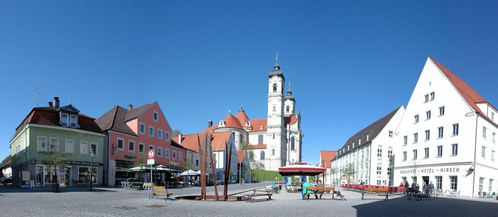 Vom Marktplatz entlang der Günz über die ehemalige Klosterbrauerei zur eindrucksvollen Basilika.