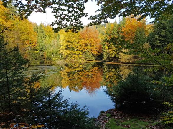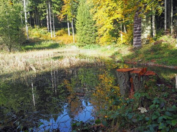 Im Norden der Gemeinde Fornach, in der Ortschaft Röth, beginnt die Wanderung Richtung Norden in das in das Wald-und Ursprungsgebiet des Tiefenbaches. Anfangs leicht ansteigend, wandern wir auf Forststraßen zu den drei ersten Teichen die herrlich im herbstlichen Buchen- und Tannenwald liegen. Dann für der Weg Richtung Osten den verschiedenen Quellbächlein des Tiefenbaches entlang, zu drei weiteren großen Teichen. Die Wanderung geht dann ansteigend wieder zurück in die Ortschaft Rödt dem Ausgangspunkt. Unterhalb des Hochlehengutes gibt es zwei weitere Teiche.