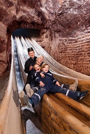 Zu Beginn der Führung fahren Sie mit der Grubenbahn 650 Meter tief in den Berg hinein und befinden sich anschließend im Kaiser-Franz-Sinkwerk. Hier werden Sie auch schon vom ersten Highlight der Tour, de ersten Rutsche erwartet. Eine Etage tiefer geht es vorbei an einer wunderschönen, in vielen Farben leuchtenden Salzkathedrale, sowie an weiteren beeindruckenden Schaustellen. Die nächsten beiden Highlights bringen alle zum Staunen: Der Magische Salzraum und die Überfahrt über den Spiegelsee – schon die beiden Namen verraten, dass hier etwas ganz Besonderes auf den Besucher wartet. Nach dem Ende der Führung wird man mit der Grubenbahn wieder sicher nach draußen gebracht und ist jetzt auf jeden Fall ein paar interessante Informationen und einige wunderschöne Eindrücke reicher.