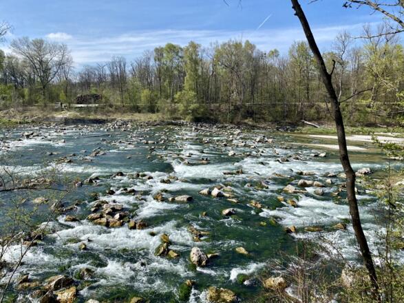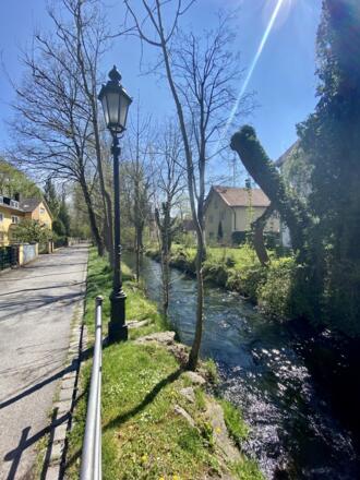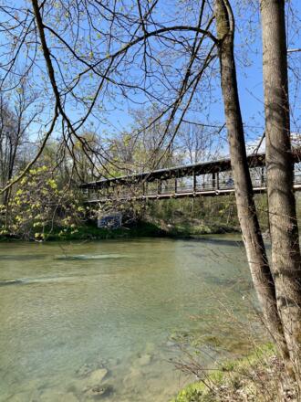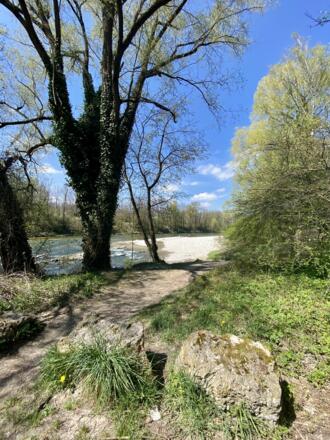 Vorbei an Stromschnellen, gemütlicheren Flussabschnitten, Brücken, Denkmälern und viel Natur kommen wir nach der Halbmarathon-Distanz in Ismaning an. Zur Abwechslung und für ein Wegbier machen wir einen kurzen Abstecher in den Ort und schlängeln uns durch Wohngebiete und den Schlosspark, aber mit einem Wegbier und einem Eis, wieder zurück an die Isar für das letzte Drittel der Tour.