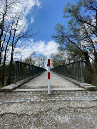 Bis wir eine Landstraße zwischen Hallbergmoos und MIntraching kreuzen, bleiben wir auf dem Damm zum Hochwasserschutz und absolvieren einen Kilometer nach dem anderen. An der Landstraße angekommen machen wir einen kurzen Schlenker nach rechts und laufen am jetzt direkt an der Isar entlang weiter gen Süden.