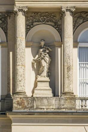 - Unter den großen Schauräumen sind das "Südliche Prunktreppenhaus" und die "Große Spiegelgalerie" hervorzuheben. Der Spiegelsaal ist mit 75 Metern größer als in Versailles und hat statt 17 Großspiegel 23. 1.848 Kerzen sollten ihn erhellen.