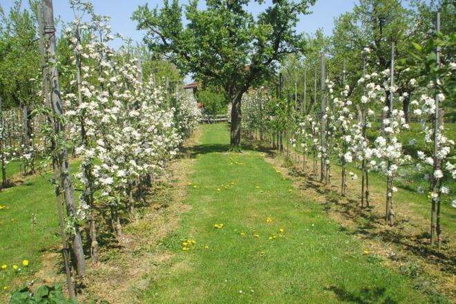 Mit etwa 100 Hochstämmen und 1200 Spindelbüschen unserer Obstanlage, können wir Sie mit einer breiten Palette von verschiedenen ungespritzten Obstsorten versorgen. Ab ca. Mitte Mai beginnen wir mit der Ernte der ersten Früchte. Ob Tafel- oder Backapfel, Diabetiker oder Allergikerfreundlich, gerne beraten wir Sie bei Ihrem Einkauf in unserem Hofladen. Des weiteren können Sie selbstgemachte Produkte wie Marmelade, Säfte, Essig, Likör, Schnäpse und zur Weihnachtszeit Tannenzweige "Adventskränze und Weihnachtsdeko" erwerben.