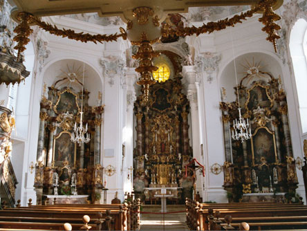 Die Pfarr- und Wallfahrtskirche Mariä Geburt wurde zwischen 1733 und 1740 durch Christian Wiedenmann aus Elchingen im Auftrag der Fugger gebaut. Die Innenausstattung überrascht mit prachtvollen Stuckarbeiten von Gottlieb und Ignaz Finsterwalder, Fresken von Christoph Thomas Scheffler (1740) und Gemälden in den Seitenaltären von Konrad Huber (1781). 1758/59 erfolgte der Einbau der Altäre durch Franz Joseph Bergmüller aus Türkheim. Am Hochaltar Gnadenbild der Muttergottes, um 1630, wohl ein Spätwerk von Christoph Rodt.